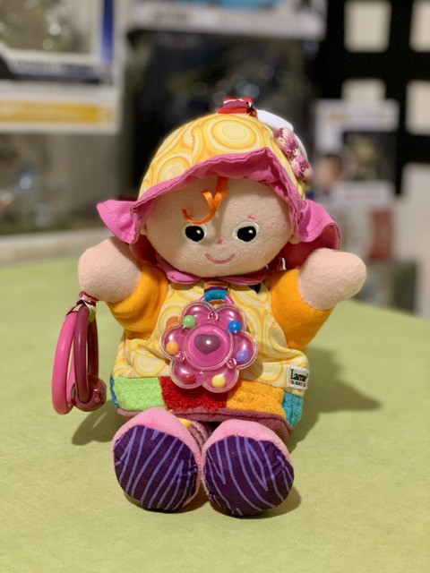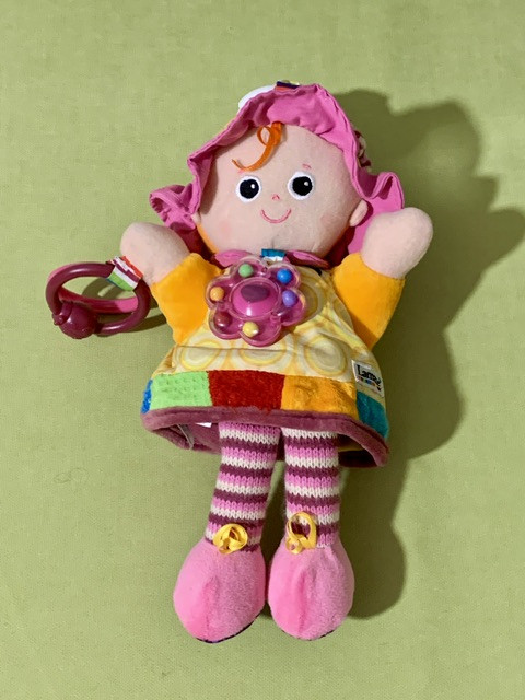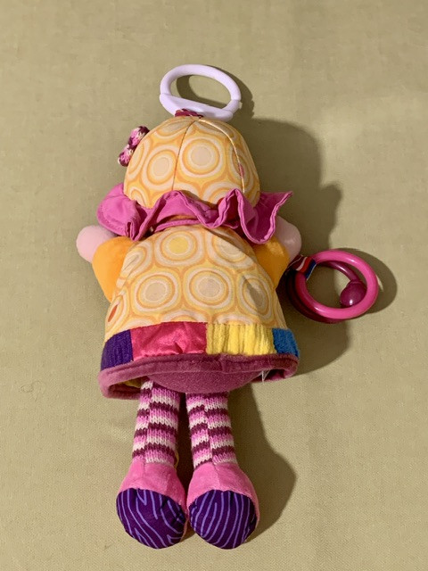 * دارای جغجغه توپی روی شکمش و حلقه بازی و جغجغه ساچمه ای داخل گردن عروسک