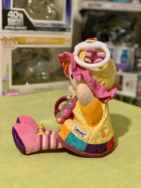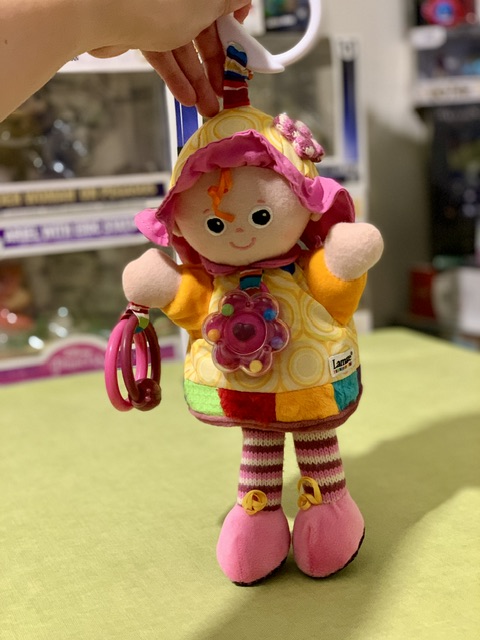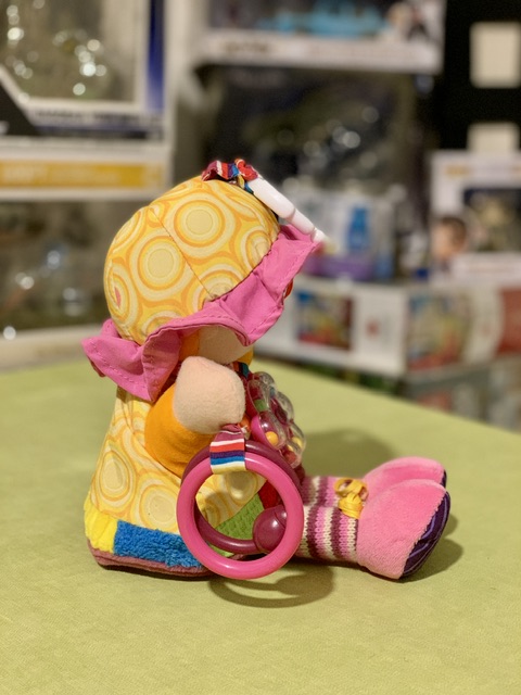 * دارای جغجغه توپی روی شکمش و حلقه بازی و جغجغه ساچمه ای داخل گردن عروسک
